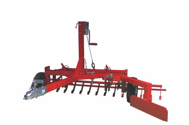 La profondeur de pénétration des dents est réglable selon plusieurs positions ainsi que la lame niveleuse. Une fois vos réglages effectués en fonction de vos besoins et de la hauteur de la boule d’attelage, il vous suffit d’utiliser le treuil pour remonter l’ensemble dents + lame et vous retrouver en position de transport.