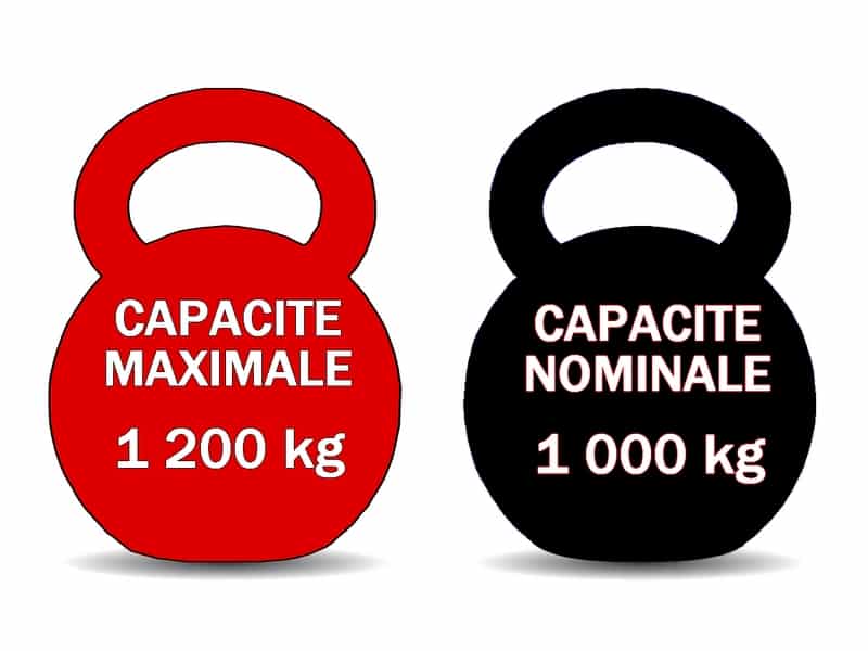 Cependant nous appliquons un coefficient de sécurité et nous vous recommandons une charge nominale de 1 000 kg.